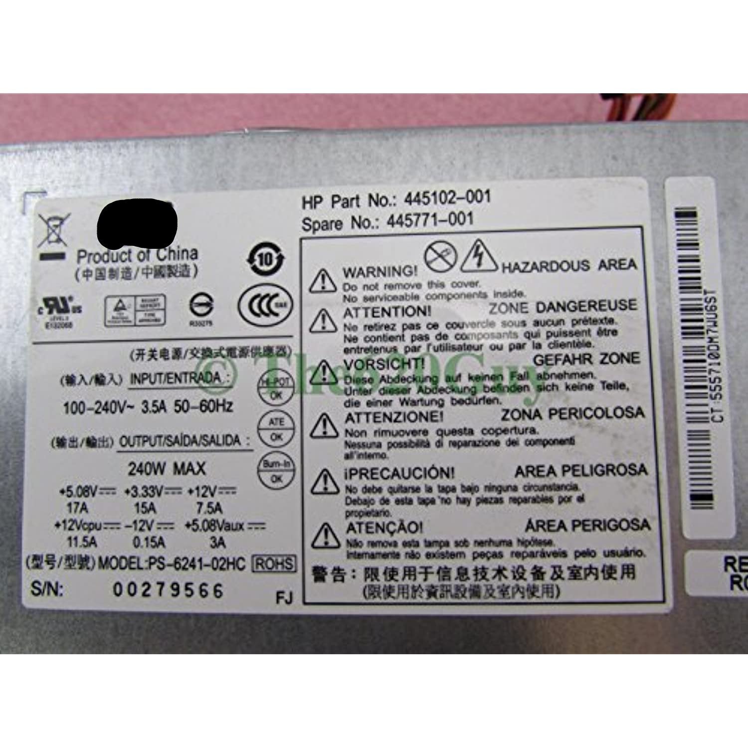 HP Power Supply RP5000 RP5700 PS-6241-02HC 240W Power Supply PSU 445771-001 445102-001